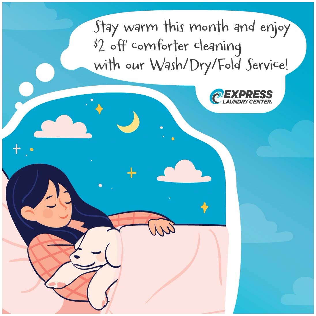 Our Wash/Dry/Fold Service simplifies life for you — whether you’re a busy parent, professional, college student, or just need a new laundry routine. Simply approach our drive-up door and a laundry associate will greet you, get your laundry, and send you on your way. You don’t even need to leave the comfort of your vehicle! Pick your laundry up later — perfectly washed, folded and packaged. We can even clean your comforters, sleeping bags, towels and tablecloths too!