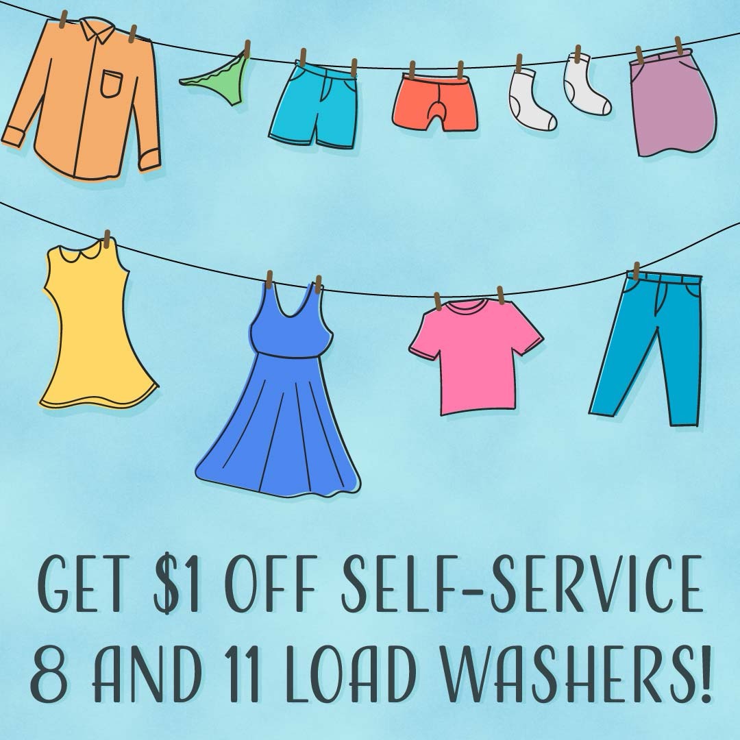 If you’re short on time and want to save money, our Dry Only Service is right for you. It’s easy! You place your laundry in the washer, start the machine, and let our laundry service associate know that you would like our Dry Only Service. We’ll transfer your laundry to the dryer and let you know when it’s ready for pick up — giving you plenty of time to run errands or grab a bite to eat.
